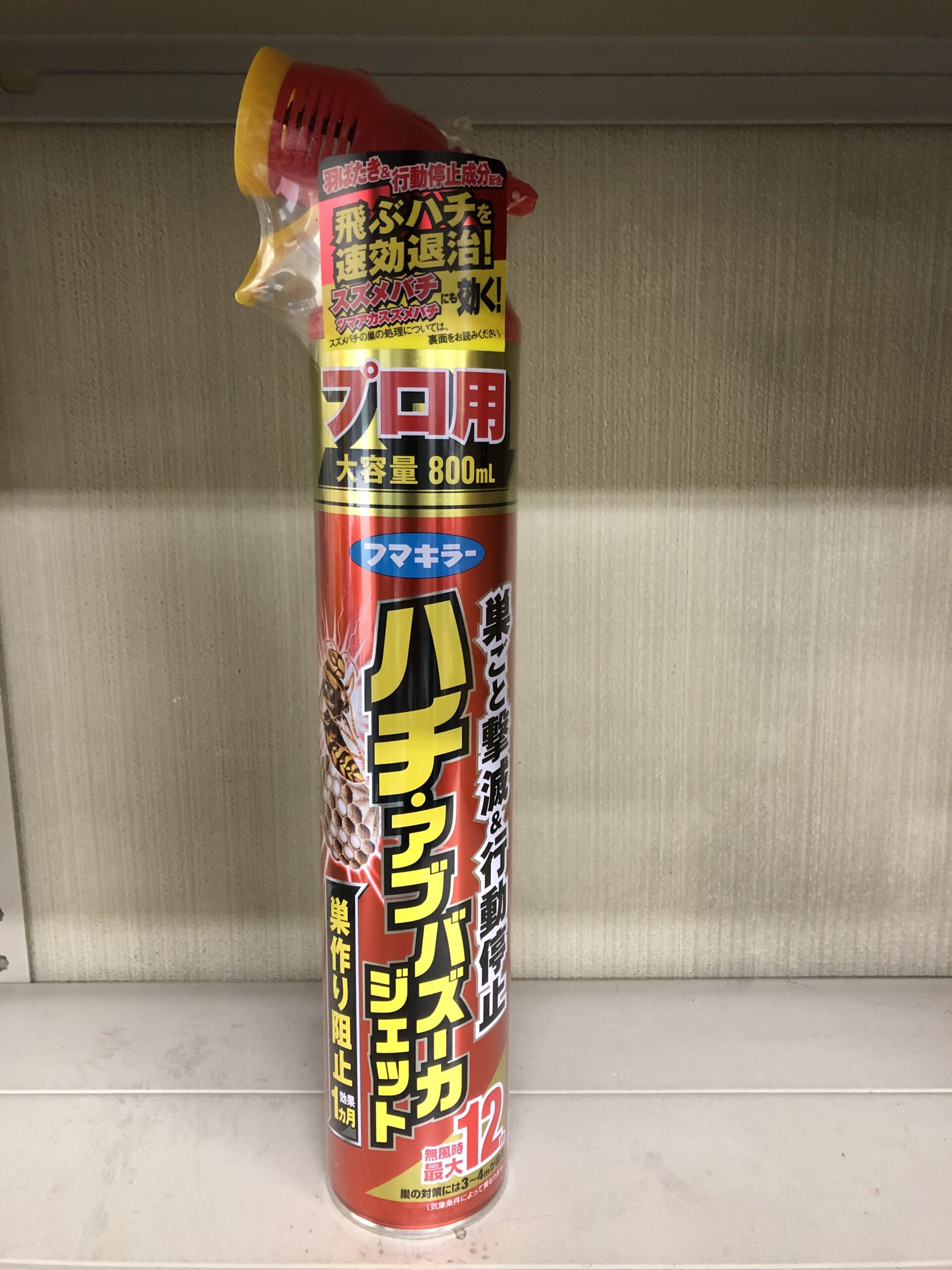 こんにちは、サンゲン滋賀営業所です。 最近営業所の駐車場でハチをよく見かけます。 慌ててハチ対策のスプレーを買いました(笑) サイズ大き過ぎ!(笑) 梅雨時期ですが、雨が降らない日・風が吹かない日はブンブン飛んでいます。 恐らく巣作りに必要な材料や花の蜜を集めているのだと思います。 この木の花が好みの様です。 これから夏本番ですので、そろそろ虫対策を考えなければいけませんね。 皆さんも刺されないようにお気を付け下さい。