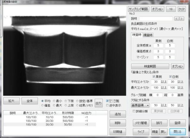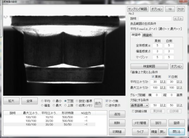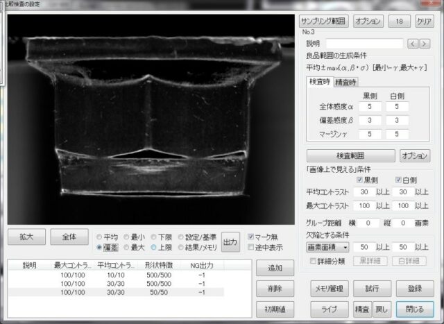あとは実際検査対象となる製品の画像を比較してバラツキの範囲に入ってるものは「良品」
